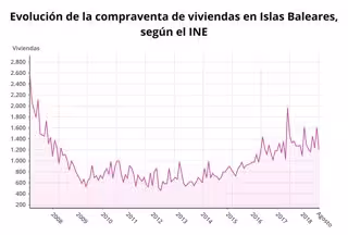 La compraventa de viviendas ha descendido en Baleares un 11,2 por ciento durante el mes de agosto, tras intercambiarse un total de 1.208 inmuebles, según datos del Instituto Nacional de Estadística (INE), que precisa que a nivel nacional la compraventa de viviendas se incrementó un 7,4 por ciento en relación al mismo mes de 2017, hasta sumar 44.637 operaciones