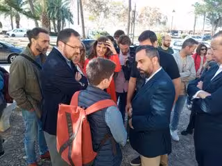 El jefe de gabinete de la presidenta Marga Prohens, Alejandro Jurado; y su jefe de prensa atienden a las explicaciones de la comunidad educativa que ha decidido no entrar a la reunión con la presidenta - EUROPA PRESS