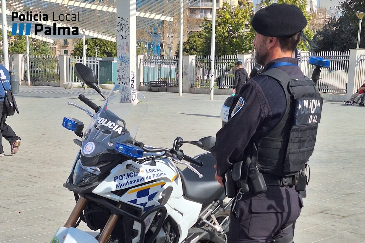 Archivo - Un agente de Policía Local de Palma vigilando en el Parque de las Estaciones. - POLICÍA LOCAL - Archivo