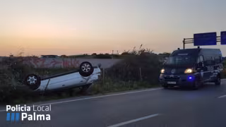 Un conductor ha dado positivo en la prueba de alcoholemia tras salirse de la autopista y volcar en el camino de Can Pastilla en la MA-19 durante la madrugada de este sábado.