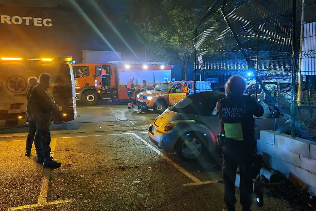 Choque del coche contra el vallado del punto limpio de Son Castelló, en Palma. - POLICÍA LOCAL