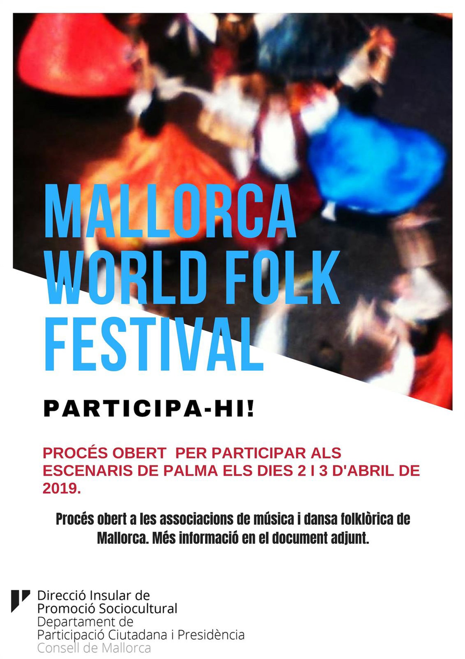 El Consell de Mallorca ha abierto este viernes el plazo de inscripciones para participar en los escenarios del Mallorca World Folk Festival, un festival folklórico internacional que tendrá lugar entre el 1 y el 17 de abril y que organiza el Departamento de Participación Ciudadana del Consell.
