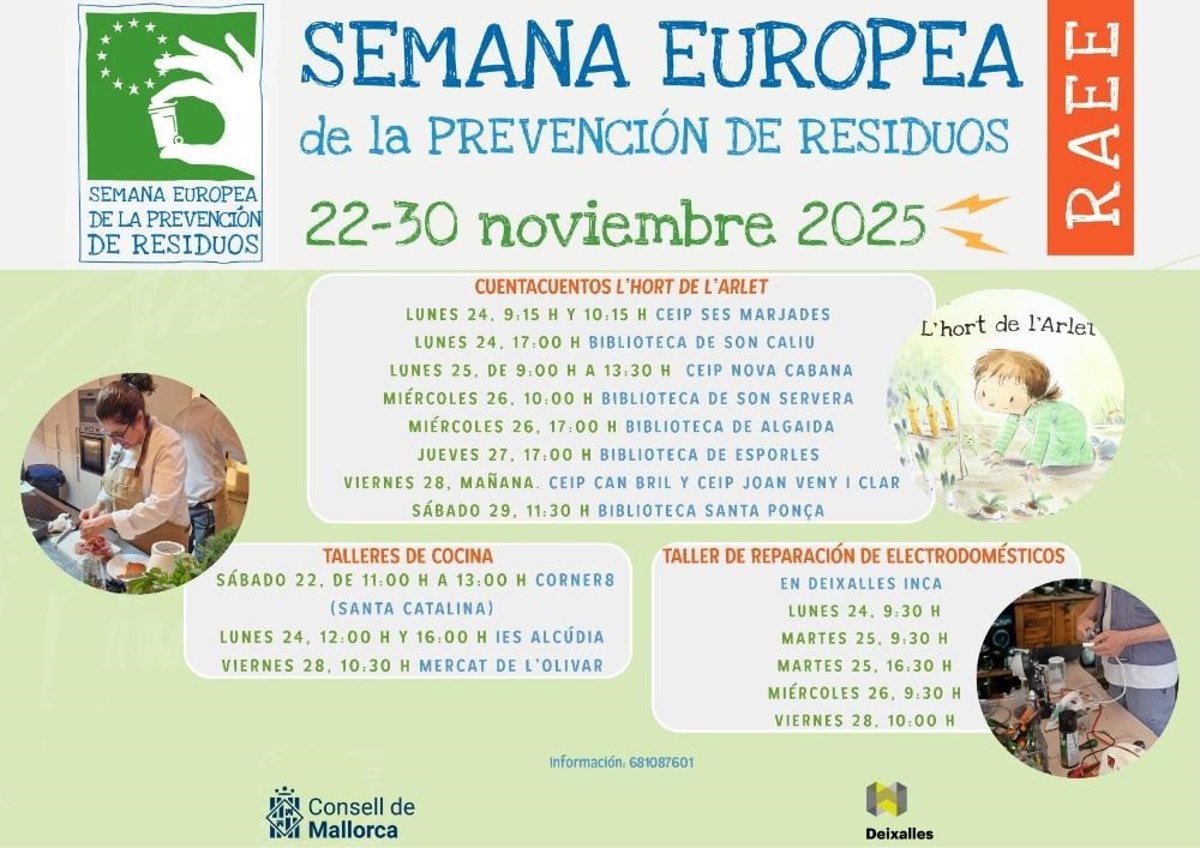 Mallorca acogerá talleres de cocina en vivo, cuentacuentos y talleres prácticos de reparación de pequeños electrodomésticos para sensibilizar a la ciudadanía sobre la reducción y la gestión correcta de residuos.