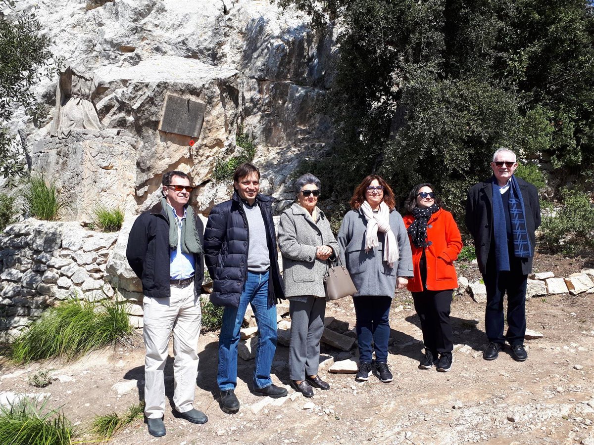 El vicepresidente y conseller insular de Cultura, Patrimonio y Deportes, Francesc Miralles; la alcaldesa de Algaida, Maria Antònia Mulet, y la propiedad de los terrenos donde se ubica la cueva han firmado un convenio de colaboración para llevar a cabo la rehabilitación de este espacio. Hoy, las tres partes firmantes se han encontrado en Randa.