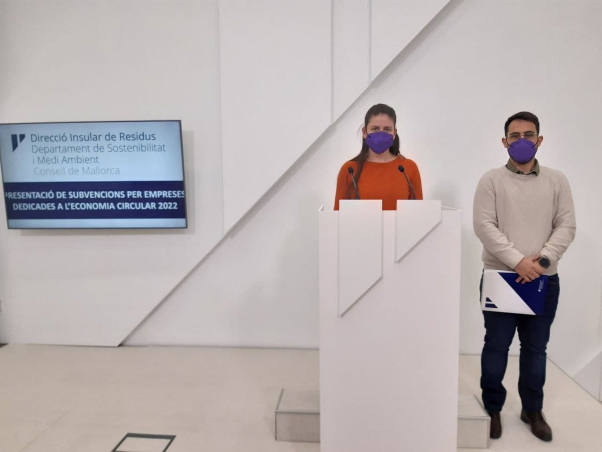 La vicepresidenta y consellera ejecutiva de Sostenibilidad y Medio Ambiente del Consell de Mallorca, Aurora Ribot, y el director insular de Residuos, Juan Carrasco, han presentado las primeras subvenciones de economía circular de la institución dirigidas a empresas y autónomos de la isla.