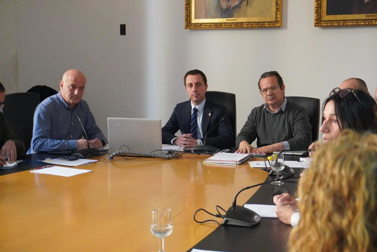 El presidente del Consell de Mallorca y del Consorcio Serra de Tramuntana, Lloren Galmés, presidiendo junto al director insular de Serra de Tramuntana, Antoni Solivellas, la reunión ordinaria de la Junta Rectora. - CONSELL DE MALLORCA