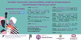 El Consell de Mallorca ha organizado con motivo del 8 de marzo la jornada 'online' 'Essencials i imprescindibles, projectes d'emprenedoria transformadors liderats per dones', en la que expondrá proyectos, experiencias, herramientas y estudios sobre el papel de la mujer en la reactivación económica.