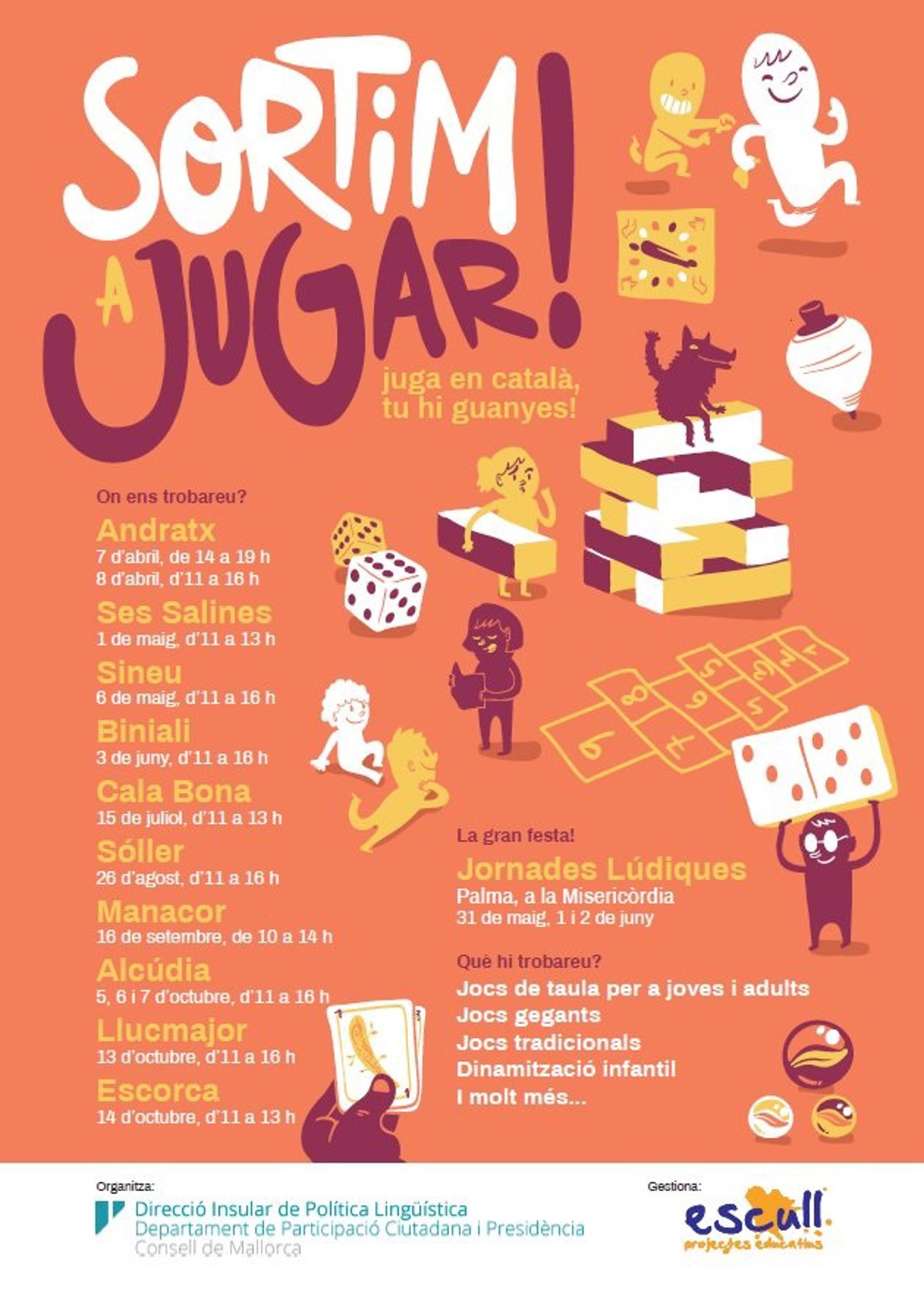 El departamento de Participación Ciudadana y Presidencia del Consell de Mallorca ha puesto en marcha la campaña 'Sortim a jugar!', que tiene como objetivo principal acercar el juego en catalán a la población mallorquina.
