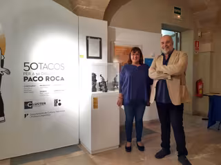 La vicepresidenta y consellera de Cultura, Patrimonio y Política Lingüística del Consell de Mallorca, Bel Busquets, y el comisario de la exposición, Rafel Vaquer, han inaugurado este jueves la muestra 'Paco Roca, 50 tacos' que cuenta con 200 piezas elaboradas por el artista entre el 1995 y la actualidad.