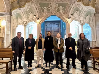 Durante el acto, los asistentes han podido comparar imágenes del estado del coro a comienzos de 2025 con su aspecto actual, una vez finalizada la restauración.
