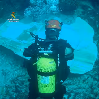 Los buceadores de los Grupos Especiales de Actividades Subacuáticas (GEAS) participaron en la identificación de los restos del velero. Además, el helicóptero 'Cuco' de la Guardia Civil también sobrevoló la zona.