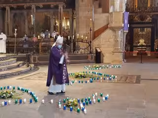 El obispo de Mallorca, Sebasti Taltavull, bendice las velas que homenajean a las víctimas de la COVID-19 en Baleares. - EUROPA PRESS