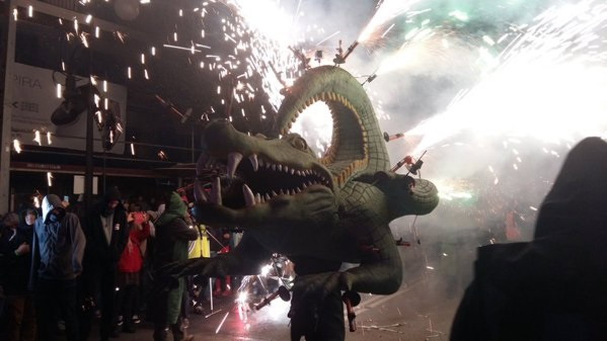 El desfile protagonizado por fuego, humo y chispas salió a las 22.00 desde la plaza de la Porta de Santa Catalina, donde a las 21.00 habían actuado los castellers, y recorrió parte del passeig Mallorca y la avenida Jaume III para terminar en la plaza Joan Carles I, donde la fiesta se prolongó.