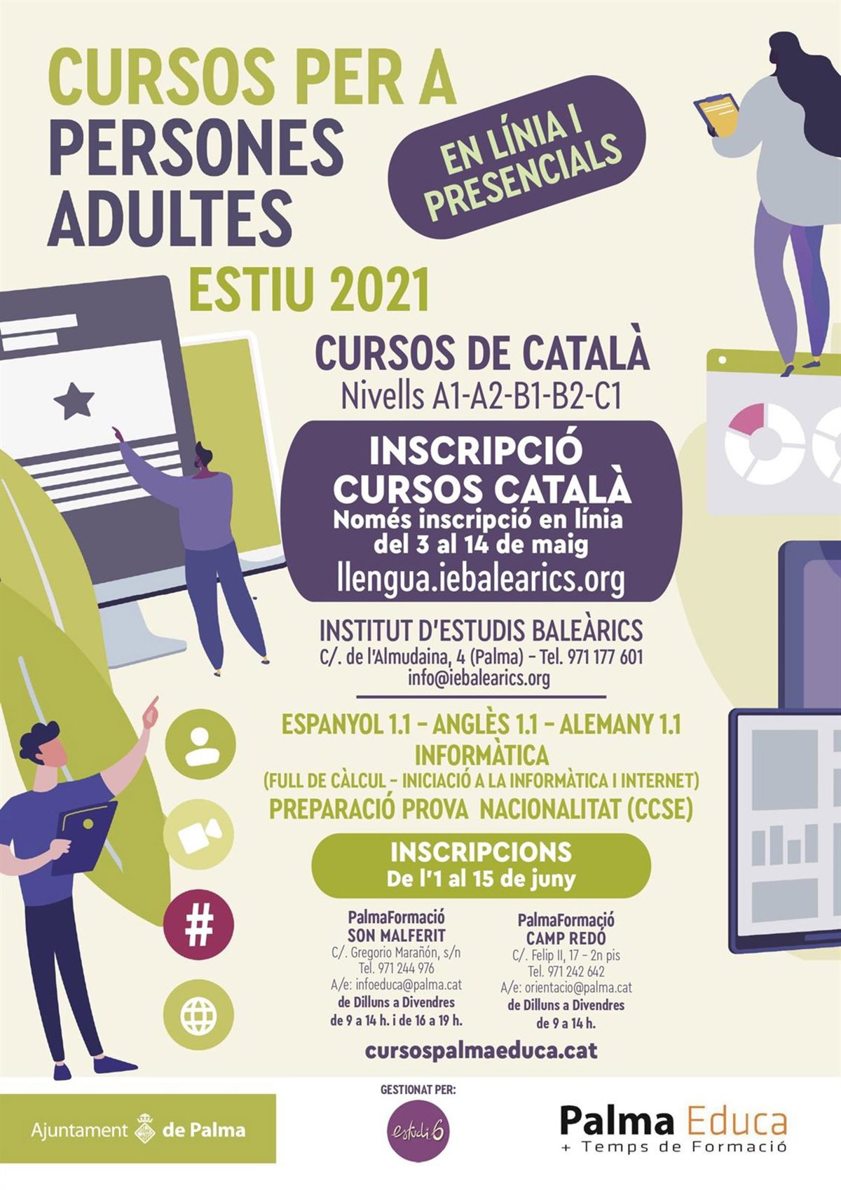 Por otro lado, PalmaEduca también aprovechado para hacer público el periodo de inscripción del resto de cursos. De este modo, se ha determinado que los interesados en cursar inglés, alemán, informática y preparación para la prueba de nacionalidad tendrán que inscribirse del 1 al 15 de junio.