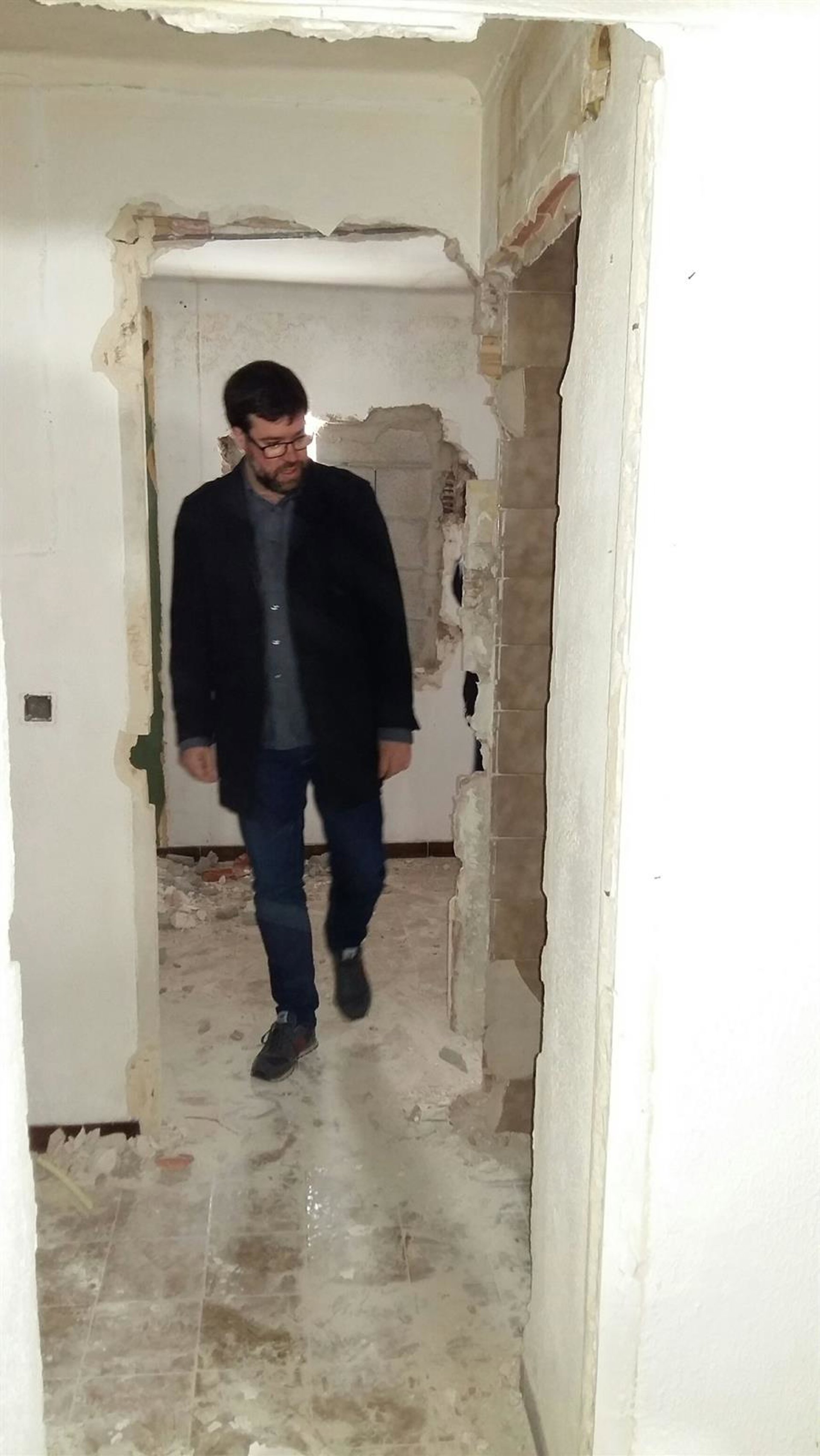 El teniente de alcalde de Modelo de Ciudad, Urbanismo y Vivienda digna, Antoni Noguera, ha abierto las puertas de uno de los pisos que hasta ahora ha sido tapiado en el barrio del Camp Redó, concretamente a las viviendas llamados de Corea.