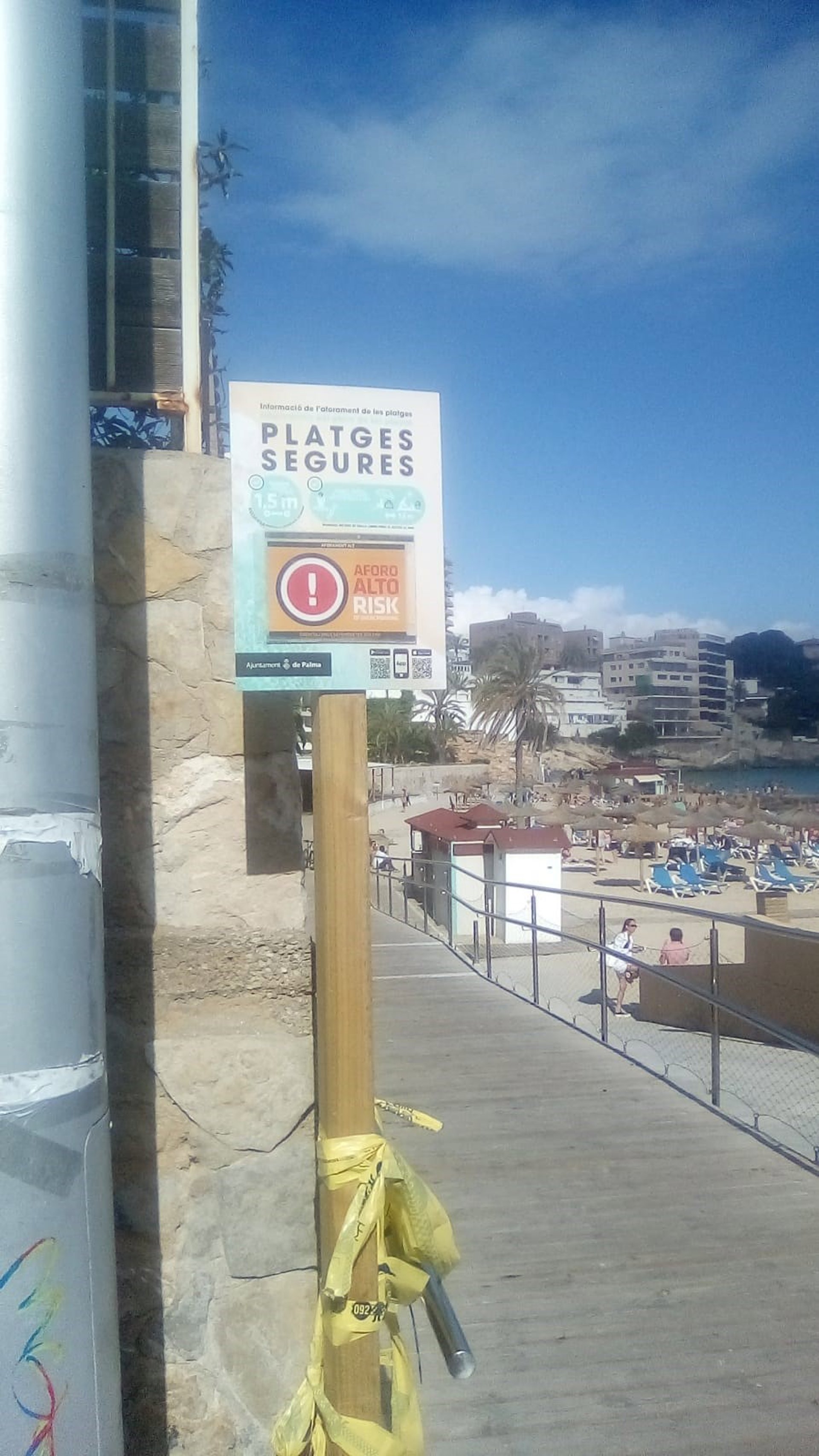El Ayuntamiento de Palma ha advertido este domingo, a través del uso de señalética, de alta afluencia en Cala Major y ha recomendado ir a otras playas.