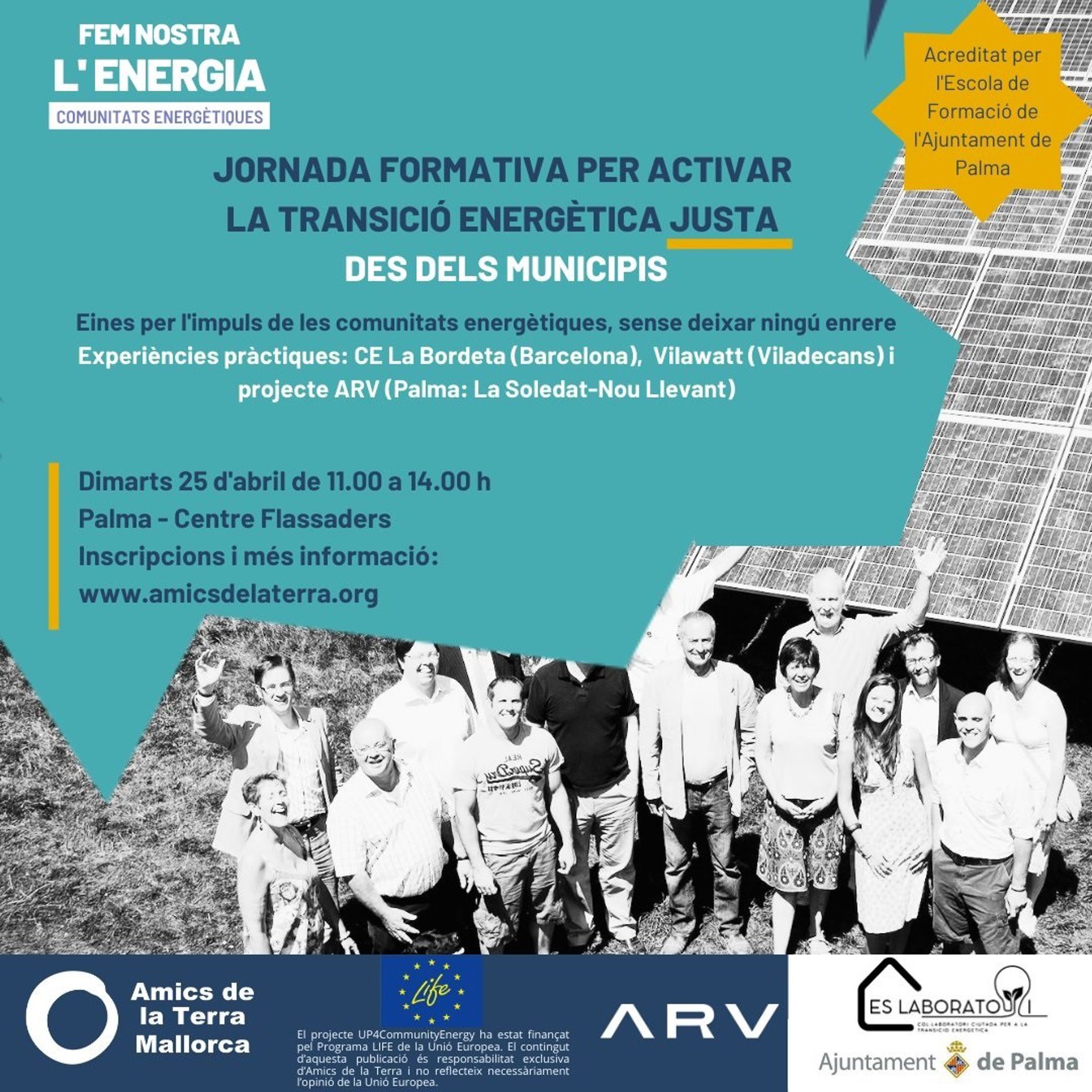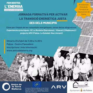 La regiduría de Modelo de Ciudad, Vivienda Digna y Sostenibilidad del Ayuntamiento de Palma y la asociación ecologista Amics de la Terra organizan este martes unas jornadas de trabajo para desarrollar comunidades energéticas.