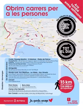 En esta línea, ha hecho hincapié en que Palma suma ya un total de 15 kilómetros de calles habilitadas para el paseo con 130.620 metros cuadrados de superficie, de los que 13,5 kilómetros entre semana, desde las 18.00 y hasta las 23.00 horas y un total de 15 durante las 24 horas del fin de semana.
