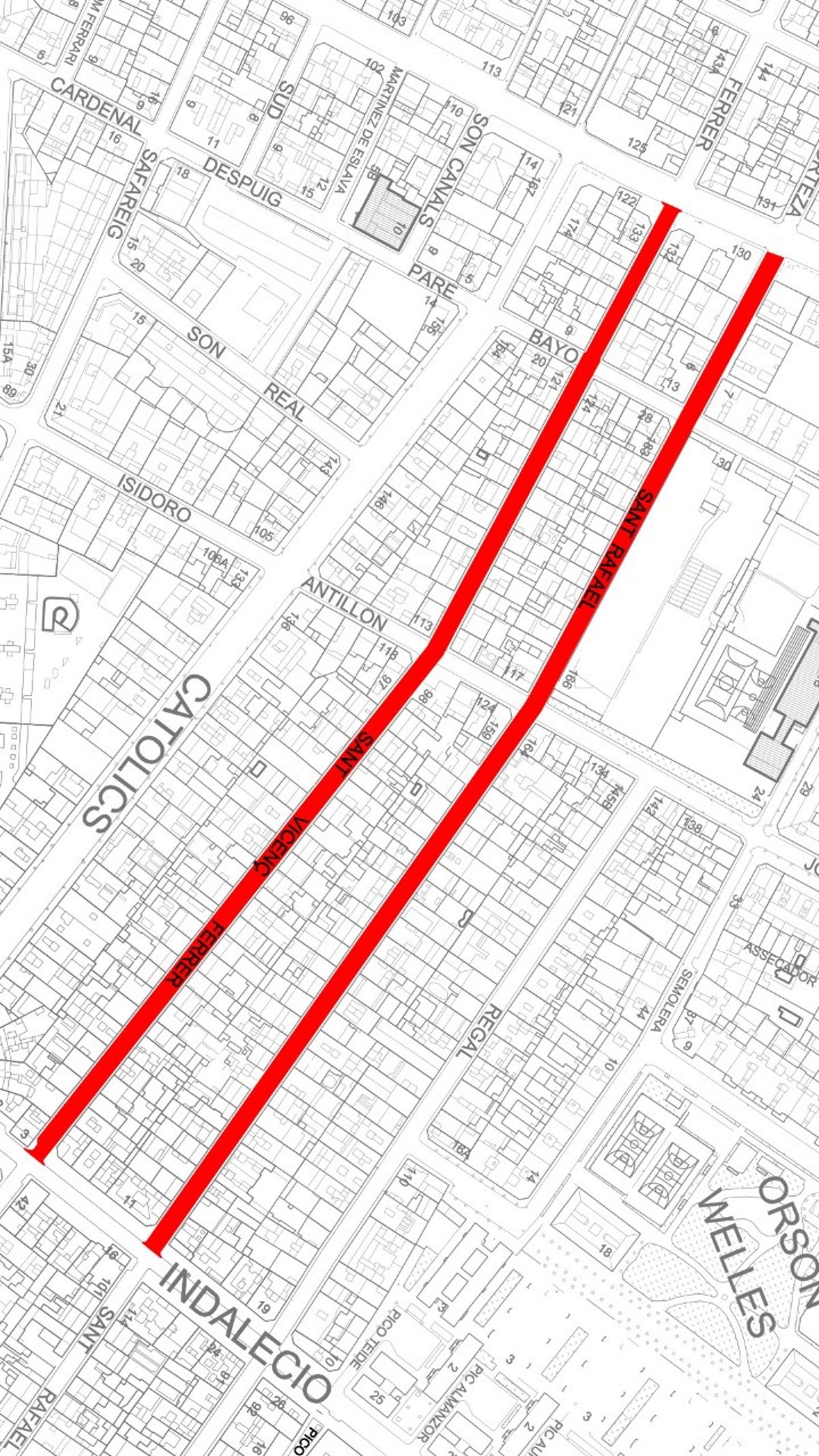 Las intervenciones afectarán íntegramente a las calles Sant Rafel y Sant Vicen Ferrer, desde la calle Aragón hasta la calle Indalecio Prieto.