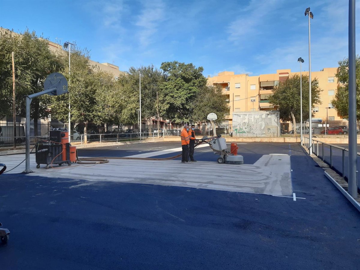 Esta actuación permitirá renovar dos pistas de baloncesto, que contarán con un nuevo sistema de drenaje para evitar inundaciones en el terreno, y se asfaltarán los 1.600 metros cuadrados que suman estas dos canchas.