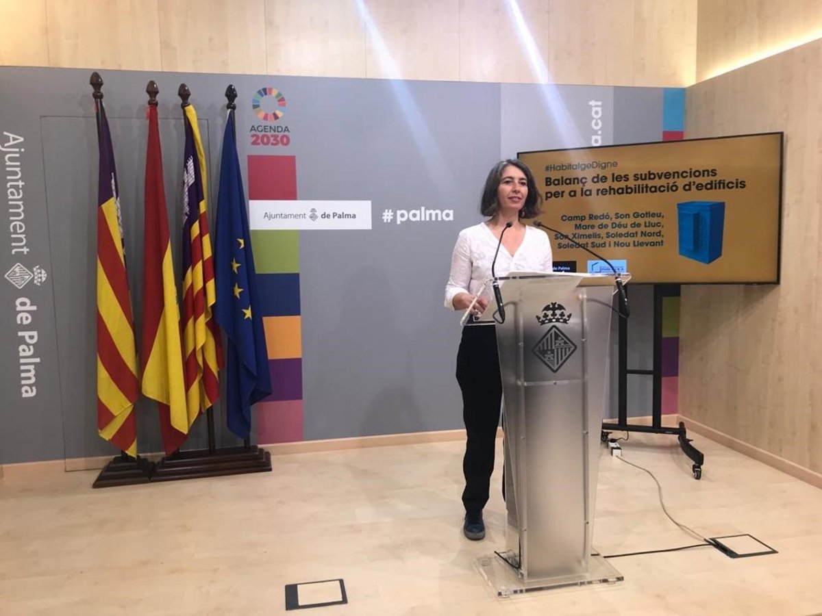 El Ayuntamiento de Palma ha duplicado el importe de la subvención destinada a la rehabilitación de edificios, hasta alcanzar el millón de euros, según ha informado este martes la regidora de Modelo de Ciudad y Vivienda Digna, Neus Truyol, durante la rueda de prensa sobre el balance de estas ayudas.