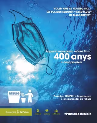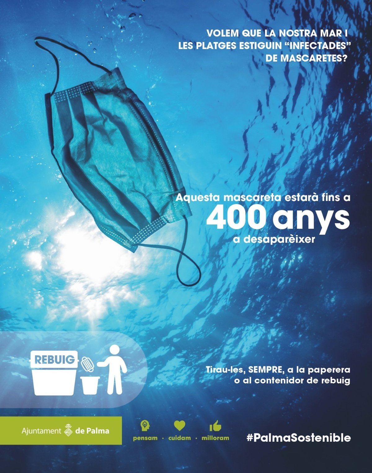 El Ayuntamiento de Palma ha lanzado una campaña para concienciar a la ciudadanía sobre el riesgo medioambiental que supone lanzar las mascarillas al mar.