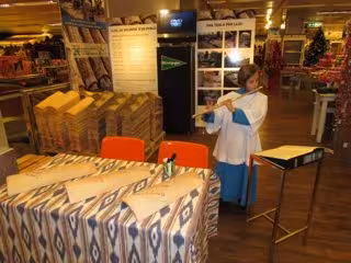 El coordinador general de la Escolania de Lluc, Joan Comas, ha explicado los detalles del proyecto durante la presentación de la iniciativa en la planta ático de El Corte Inglés de Avenidas, donde ha actuado una "Blauet" de esta Escolania.