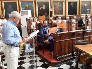 Los regidores de Cort en el Ayuntamiento muestran carteles reivindicativos en el pleno. - CS