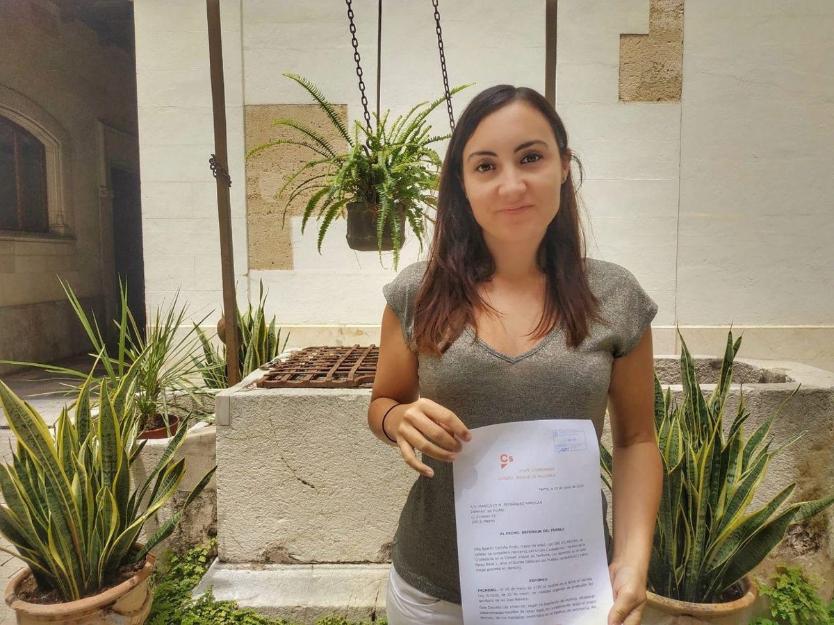 La portavoz de Cs en el Consell de Mallorca, Beatriz Camiña, con el documento presentado ante el Defensor del Pueblo. - CS