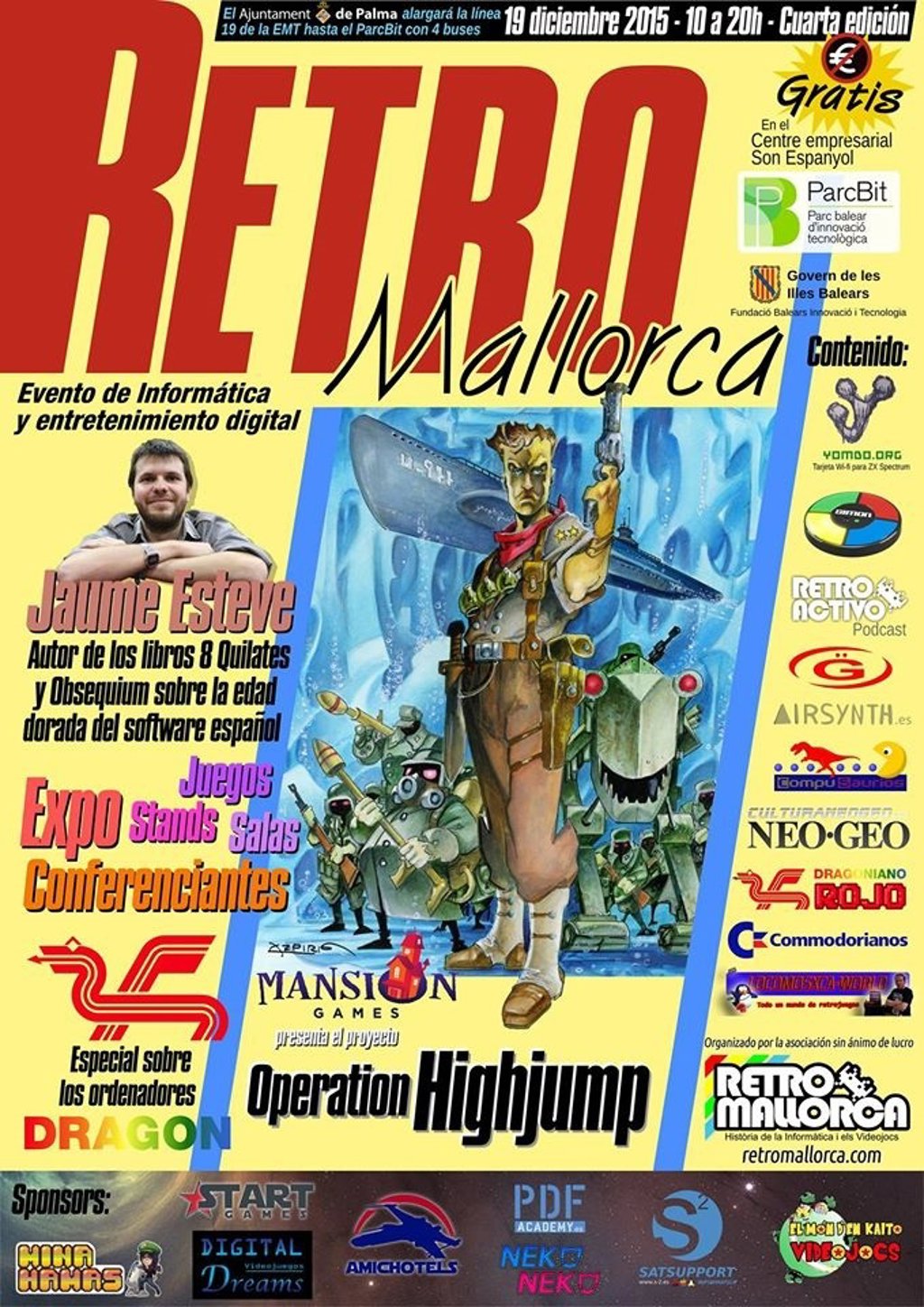 El evento será gratuito y en él intervendrá el escritor Jaume Esteve que ha publicado varios libros sobre la edad dorada del software español ('8 quilates' y 'Obsequim') y el estudio mallorquín de videojuegos Mansion Games presentará 'Operation Highjump', su nuevo proyecto.