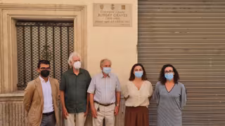 El conseller de Fondos Europeos, Universidad y Cultura, Miquel Company; los hijos del Robert Graves, William Graves y Thomas Graves; y la priemra teniente de alcalde del Ayuntamiento de palma, Joana Maria Adrover - GOVERN