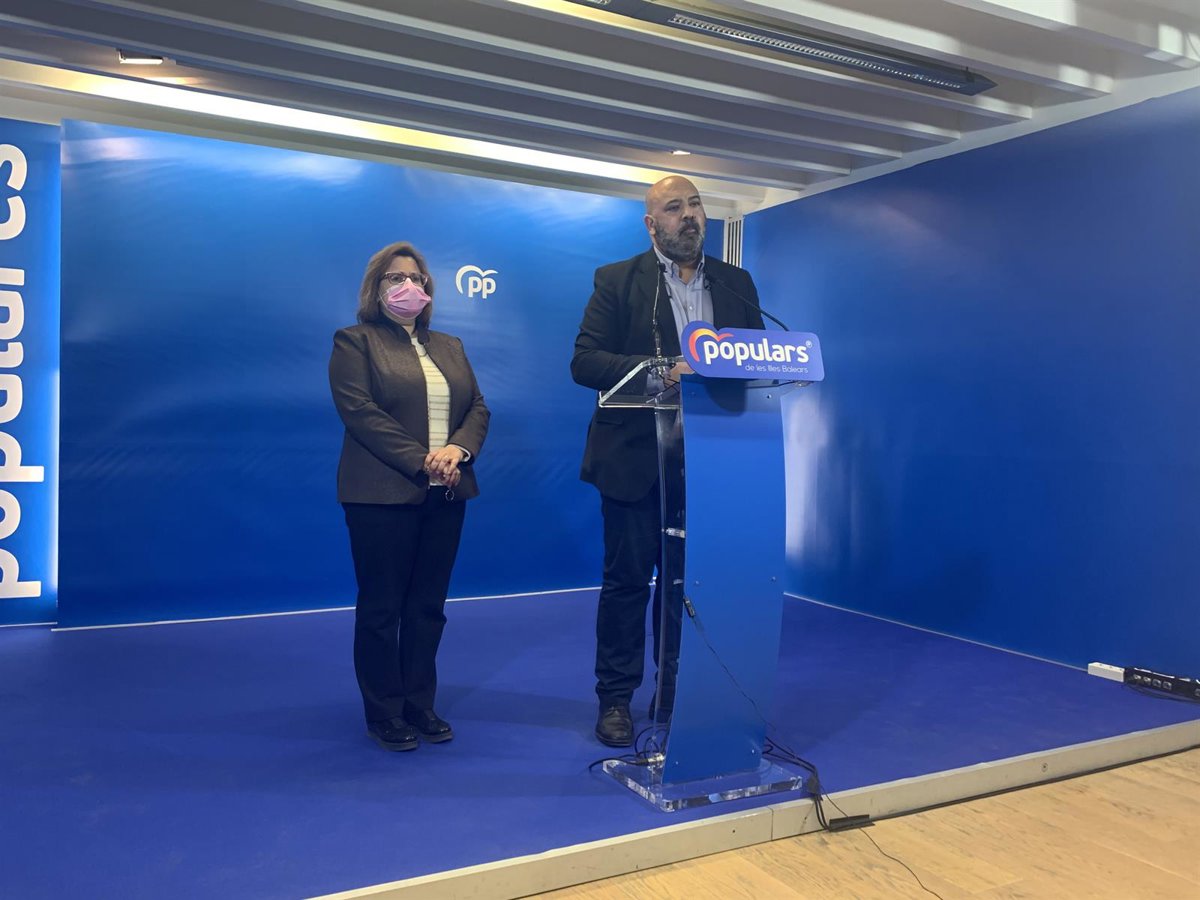 Archivo - El presidente de la Junta Territorial del PP, Jaime Martínez, y la portavoz del PP en el Ayuntamiento de Palma, Mercedes Celeste, durante una rueda de prensa. - EUROPA PRESS - Archivo