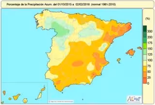 El déficit de precipitaciones supera el 25 por ciento en Cantabria, mitad sur del País Vasco, Cataluña, norte de Navarra, y nordeste de la provincia de Burgos, así como en gran parte de Madrid, Castilla-La Mancha, sureste de Extremadura, Andalucía, Comunidad Valenciana, Murcia, Baleares, Canarias, y en extensas áreas de Aragón.