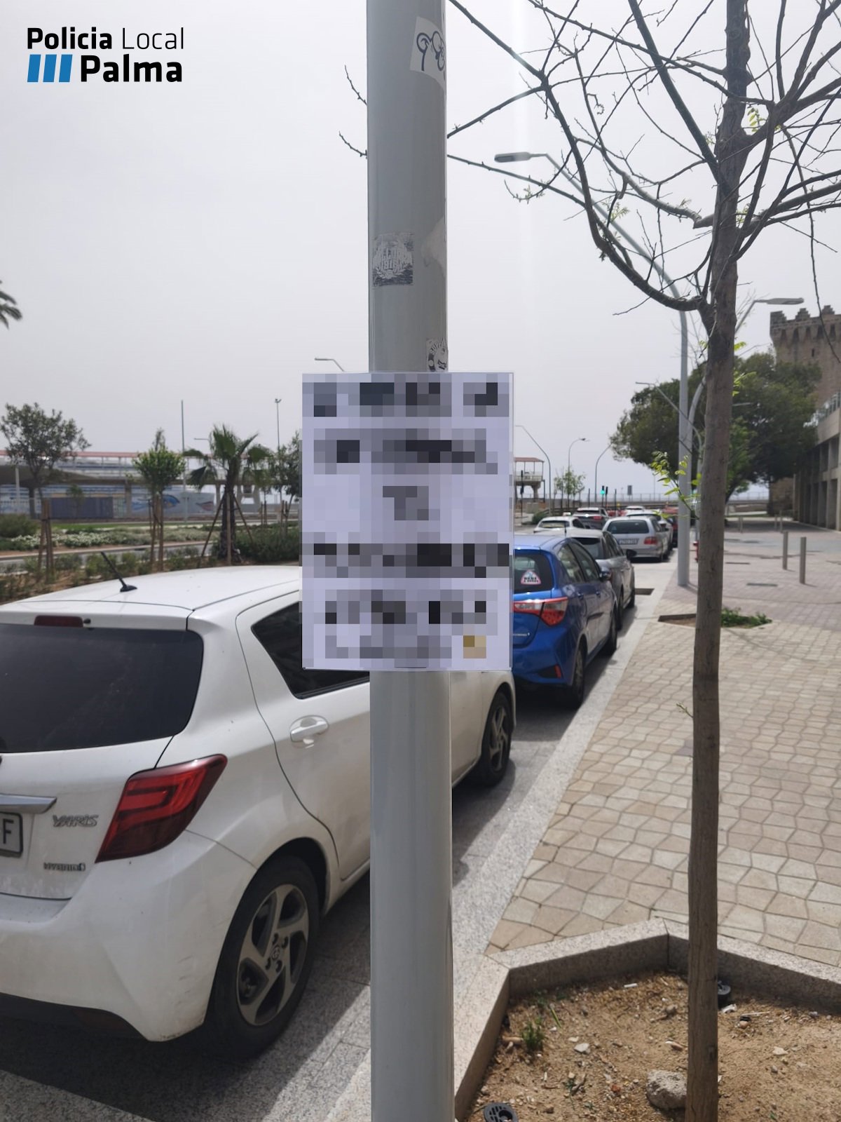 La Policía Local de Palma ha denunciado a un hombre por, presuntamente, colgar carteles en farolas y postes, tras discutir con la propietaria de un local del paseo Marítimo de Palma.