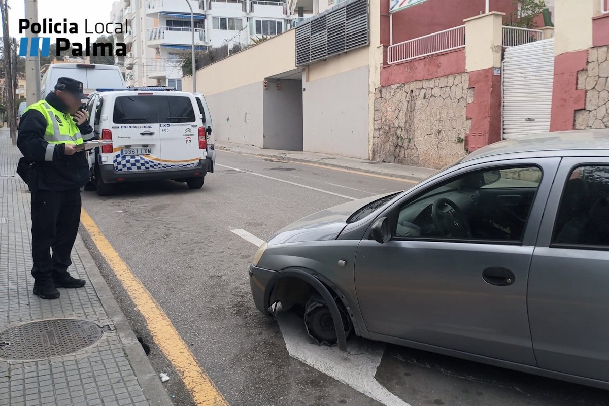 La Policía Local de Palma ha denunciado a un hombre, español y de 47 años, que conducía un coche sin un neumático habiendo consumido alcohol y drogas. El hombre conducía con una tasa de alcohol superior al doble de la permitida.