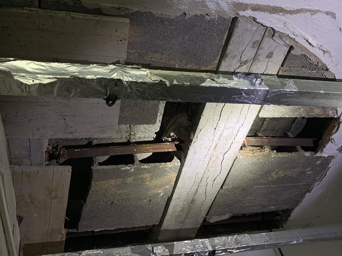 En el forjado existente entre la planta semisubterránea y la planta baja, en la parte este del edificio plurifamiliar, es donde se ha detectado un deterioro "muy avanzado", con desprendimientos de parte del material.