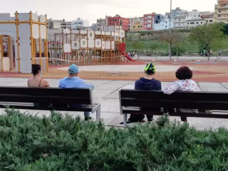Personas sentadas en un banco en el Parque de Sa Riera, en el primer día en el que se permitieron los paseos generalizados y salidas para hacer deporte durante el estado de alarma. - EUROPA PRESS