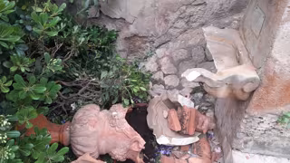 Los desperfectos generados en la maceta y la fuente de piedra. - AYUNTAMIENTO DE PALMA