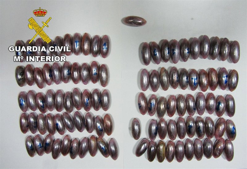 En un comunicado, la Benemérita destaca que, en un vuelo procedente de Málaga con destino final a Ibiza, se detuvo en el aeropuerto de Palma a los dos pasajeros tras realizarles un examen radiológico y detectar en el interior de su organismo cuerpos extraños.