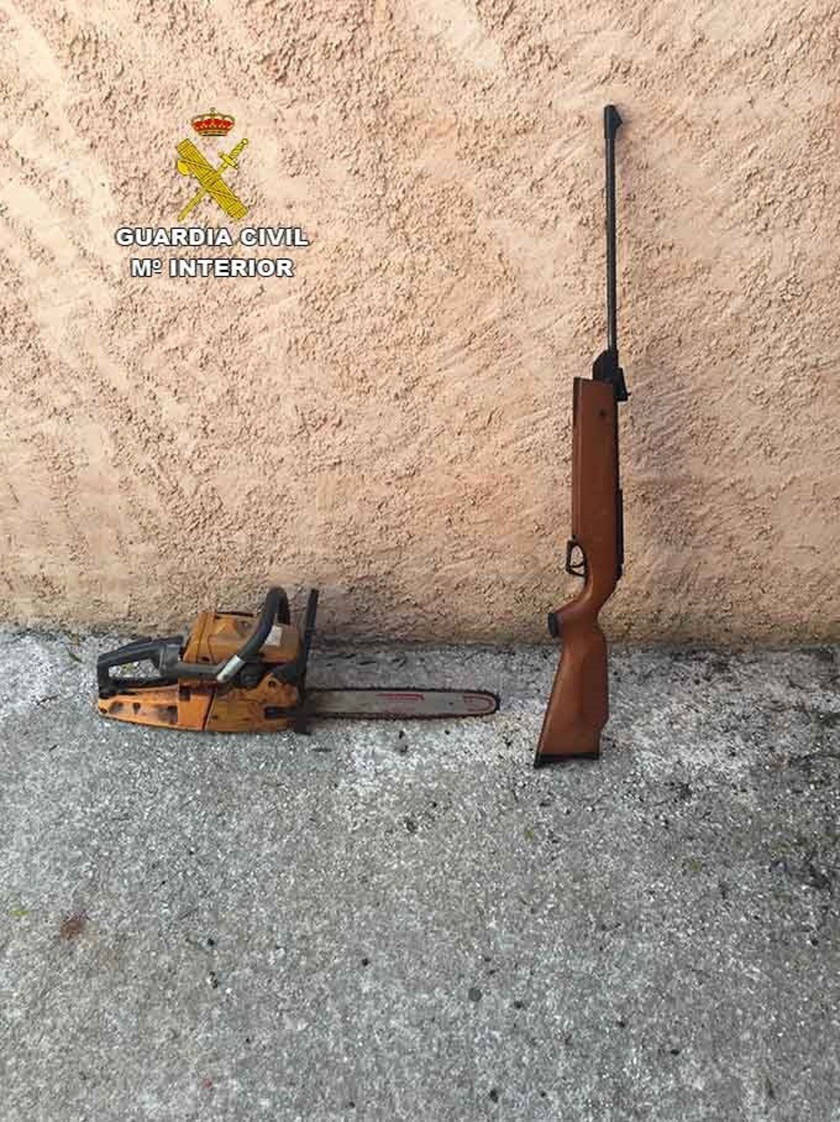 Igualmente, se detuvo a la mujer porque, en el momento de la detención, intentó agredir a los agentes con una motosierra que llevaban en el maletero.