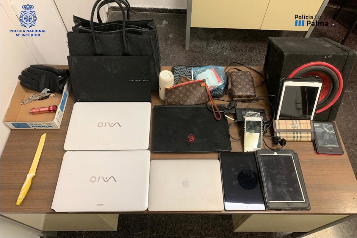 Varias patrullas de seguridad ciudadana de la Policía Nacional y de la Policía Local de Palma se personaron en el lugar y se entrevistaron con la perjudicada, quien indicó que estaba con su marido y su hija durmiendo en el domicilio, que se despertó al ver una luz encendida y, posteriormente, comprobó que le habían sustraído varios ordenadores, móviles y un bolso.