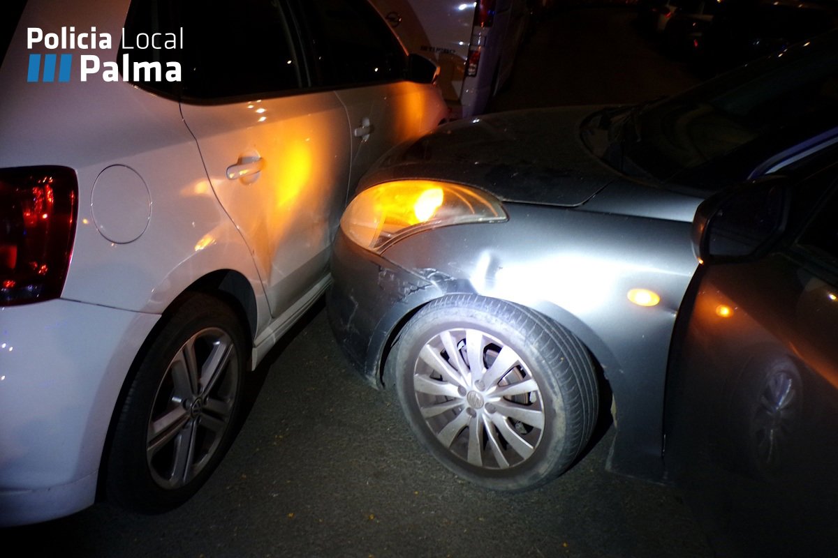 La Policía Local de Palma ha detenido a un conductor, español y de 28 años, por presuntamente chocar con otro coche y dañar intencionadamente otros seis. El hombre arrojó una tasa de 0,74 mg/l de alcohol en aire espirado, casi el triple del máximo legal permitido.