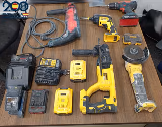 Paralelamente, otra de las patrullas recuperó la bolsa que el presunto autor había tirado al suelo al iniciar la huida y en su interior se localizaron numerosas herramientas como un amoldador, tres taladros de batería, tres baterías, dos cargadores, un percutor de cable y un telémetro láser.