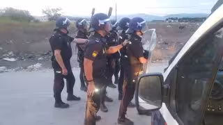 Según han informado fuentes de la Policía, mientras se llevaban esposado al atracador, algunos habitantes del poblado arrojaron piedras contra los agentes y los coches policiales.