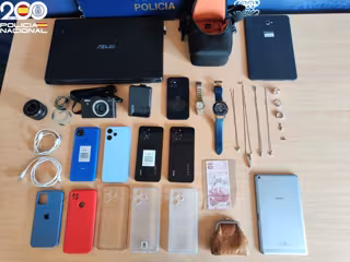 Dispositivos eléctronicos y joyas recuperadas por la Policía Nacional - POLICÍA NACIONAL