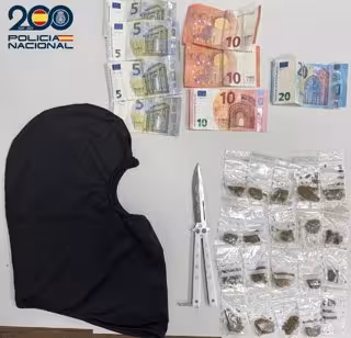 Los agentes dieron el alto al joven y, tras un cacheo entre sus ropas y pertenecías, se le localizó diversa droga individualizada, una báscula, una navaja y un pasamontaña, además de dinero en efectivo, todo ello en relación al tráfico de sustancia estupefaciente.