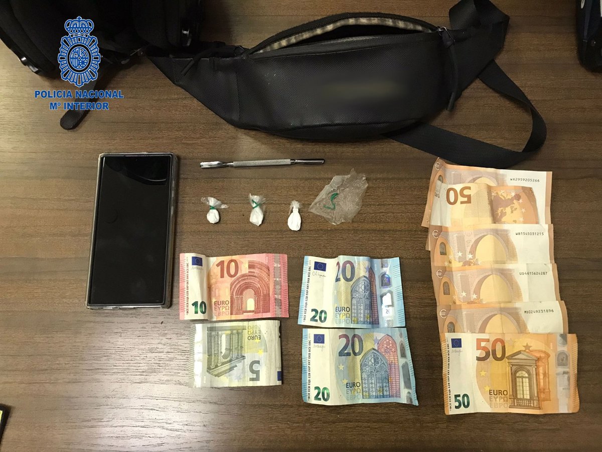 Los agentes se dirigieron hacia el vehículo indicado, procediendo a entrevistarse con dichas personas, localizando dentro de la riñonera del detenido un envoltorio de plástico conteniendo sustancia blanca, un cortacutículas con restos de droga y dinero.