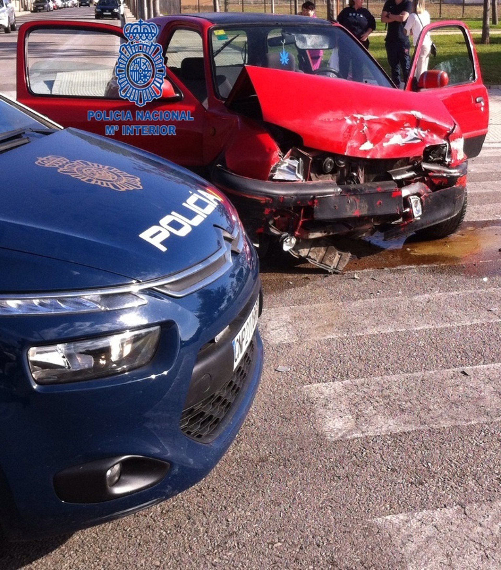 Así, una vez localizado el vehículo y al percatarse el ladrón de que la Policía le perseguía, se inició una persecución por las calles de Palma en las que el sujeto superó la velocidad establecida y circuló en contra dirección hasta que finalmente impactó con un tercer vehículo que estaba en la calle Bronca, lugar donde quedaron siniestrados ambos automóviles.