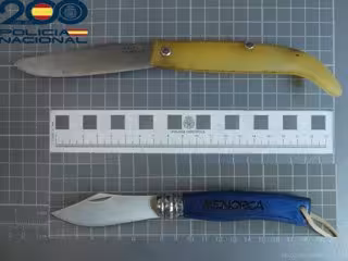 Navajas incautadas al detenido por un robo con violencia a un hombre de edad avanzada en Ciutadella - POLICÍA NACIONAL