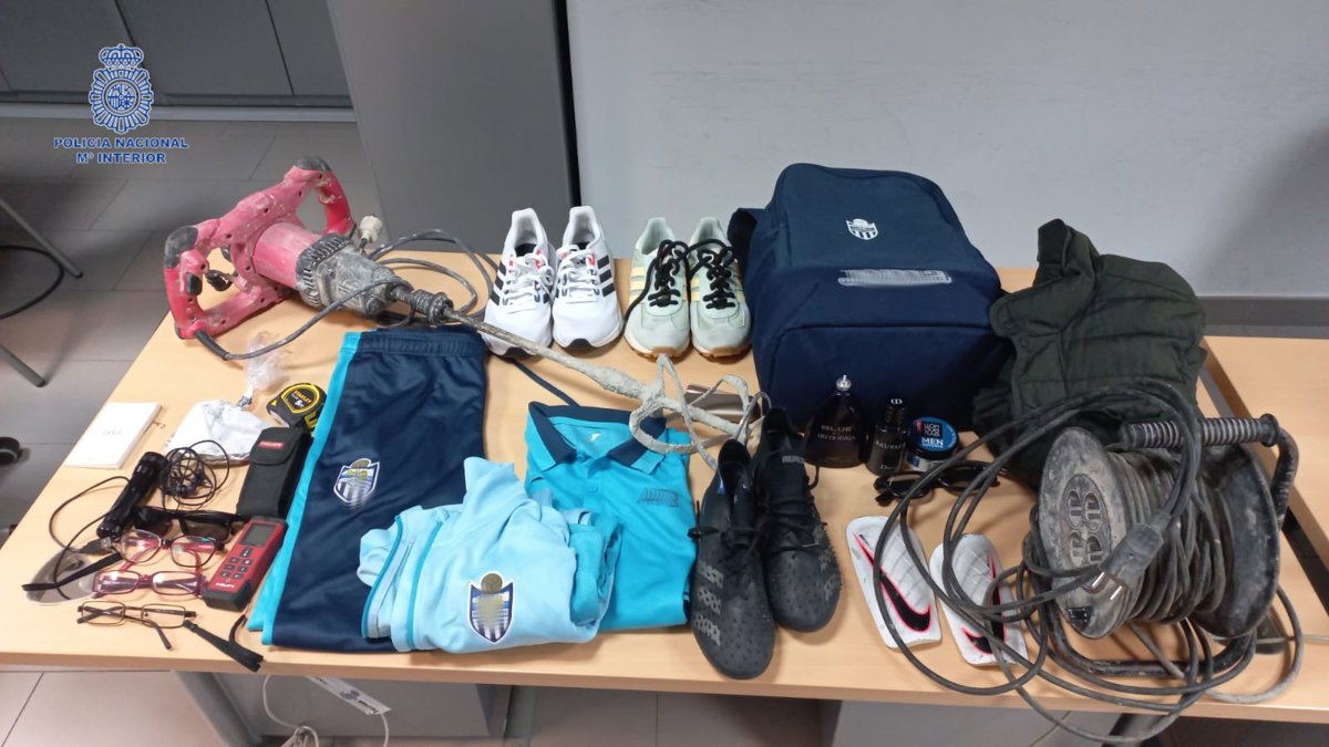 Tras identificarle, le intervinieron diversas monedas y billetes fraccionados, una linterna y diversos objetos más, así como una mochila con herramientas, diversos pares de zapatos, botes de colonia, una equipación de fútbol y otros bienes. En la cesta de la bicicleta tenía otras dos herramientas.